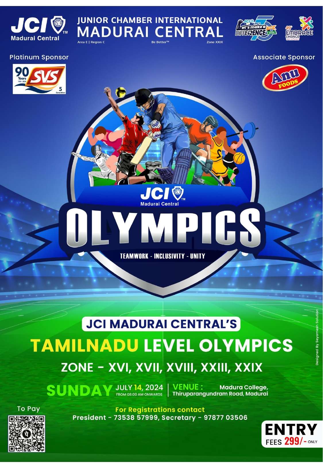 The President & Members Cordially invite you & your Family to participate in the JCI MADURAI CENTRAL'S State(Tamilnadu) Level Olympics